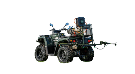 Professional sprayer with 70L tank, 3m boom, and 10m hose reel. Features Lechler precision nozzles and spring-loaded boom protection.