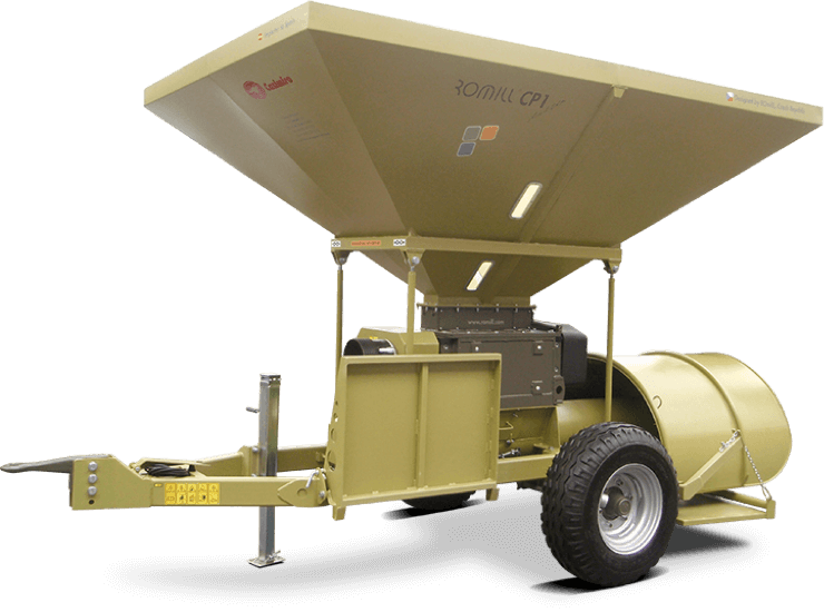 High-capacity crusher for contractors and larger operations. Dual crushing units with 4 rollers. IBC barrel space for preservative directly on machine.