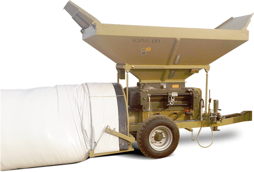 Machines work as wet grain crushers during harvest season and as dry grain grinders throughout the year without changing working rollers. With a special adapter, it is possible to bag e.g. sugar beet pulps or brewer’s malt.