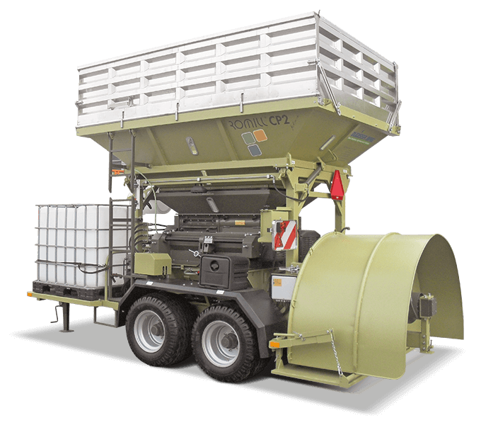 ROmiLL’s most powerful crusher with 1200mm rollers. Covers work of up to three harvesters. Press-tunnel options: 1.5m, 2m, 2.4m or flexible tunnel.
