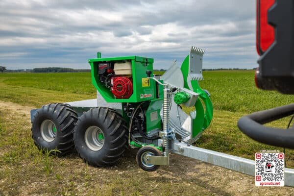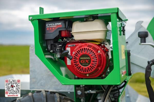 Power comes from a Honda GX200 (5.5hp) engine driving an independent hydraulic system. This means the stone collector operates independently of the ATV's own engine, keeping the ATV simple and the machine reliable.