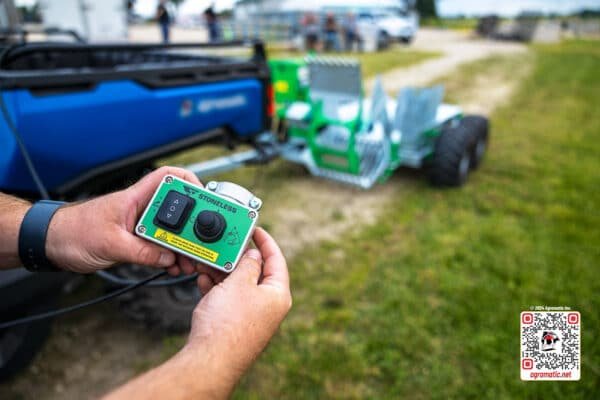 The same proven machine configured for use with UTVs and compact tractors. The ATV Stone Collector connects quickly and easily to your machine’s tow hitch and is controlled by a joystick mounted to the steering wheel or handlebar. Minimum ATV requirement: 500cc, 4×4.