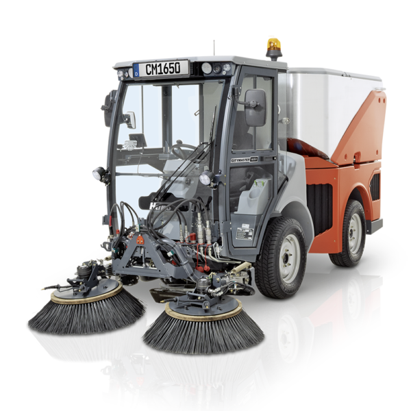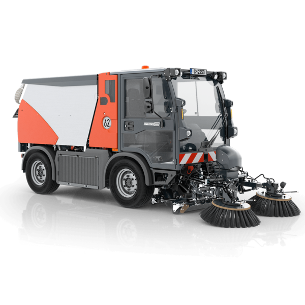 Premium 6-tonne class sweeper with 2-or 3-broom system and 2m³ hopper. Scrubbing deck, weed removal, and winter service capable.