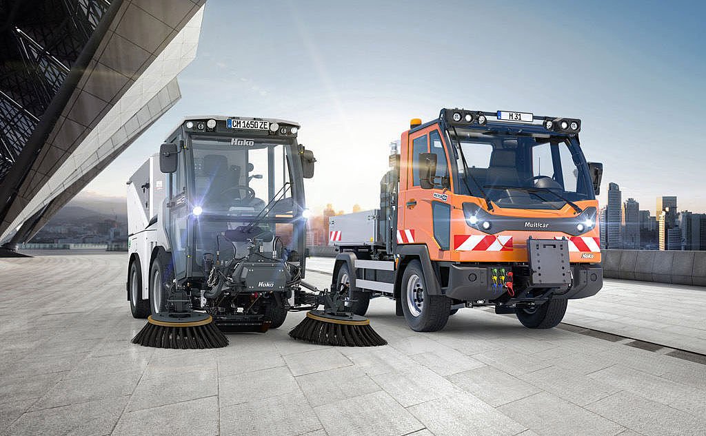 First all-electric compact sweeper in the 3.5-t class from Hako. Up to 9 hours operation, zero emissions, Class B driving licence.