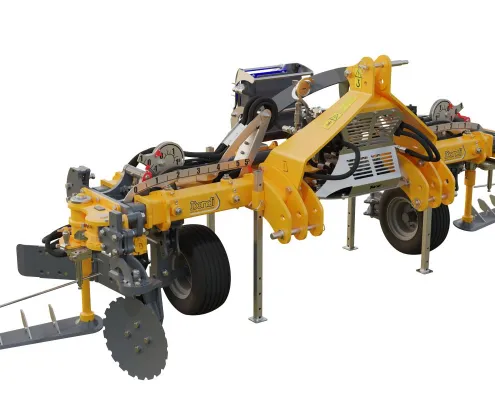 Purpose-built equipment for under-canopy and inter-row operations, featuring INTERVITIS inter-row units with adjustable mechanical feelers.