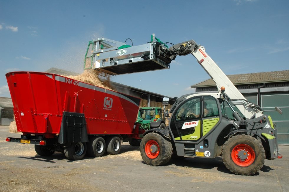 LAMMA Bronze Award winner – the first dual-function machine combining feeding forage and straw spreading. Bladed-edge tines rotate anti-clockwise for feeding, clockwise for 15m throw spreading.